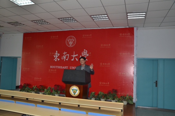 020145团支部讯:2016年4月7日下午,无锡市滨湖区河埒街道政协工委主任谢谦华应邀来校作了“中国载人航天工程发展现状与未来展望”的主题讲座,东南大学机械工程学院党委副书记王斌老师、大二年级辅导员刘宗涛老师以及各学院本硕博共200余名学生聆听了讲座。