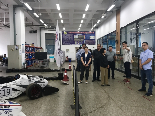随后,调研组又移步到位于工培中心“创客空间”的东南大学方程式赛车队。车队负责人详细介绍了车队创立到现在的发展历程。其中,油车在14年首次参赛便打破了大赛燃油效率世界纪录,取得了新秀车队第三名的好成绩。在这里,调研组专家特别感兴趣地提问车队负责人打破省油世界纪录的技术内核。此外,纯电动赛车队于2015年正式参赛,多项成绩已跻身全国前十,成为全国参赛队伍中的领跑者。2017年无人车车队正式成立,是无人车赛举办首年的6支受邀队伍之一。调研组专家还特别关心了车队每年资金投入和资金来源的问题,车队负责人也一一作出解答。
