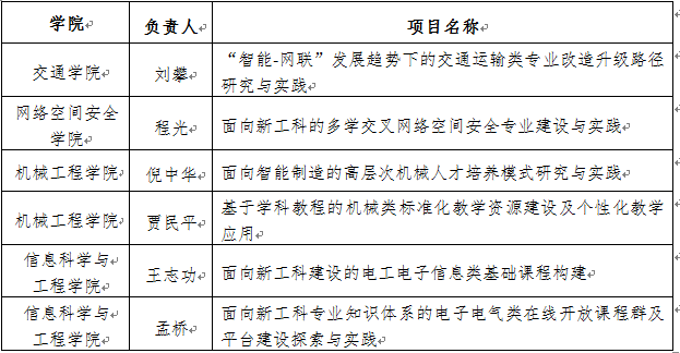近日,教育部根据《教育部办公厅关于推荐新工科研究与实践项目的通知》(教高厅函〔2017〕33号)精神与要求,在部属高校、各省级教育行政部门、理工专业类教学指导委员会以及相关行业协(学)会择优推荐的基础上,经通讯评议及专家组评议,共认定612个项目为国家级新工科研究与实践项目,东南大学共有6个项目入选(见表),入选数量位居全国第四。其中机械工程学院共有2个项目入选。