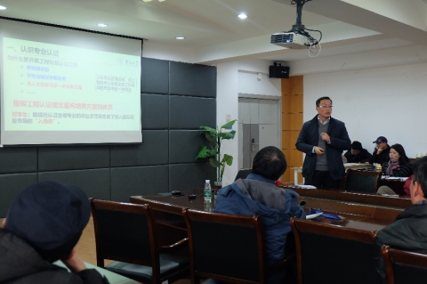 常熟理工学院机械工程学院胡朝斌院长受殷国栋副院长邀请,给各位老师做了《机械工程专业认证过程与展望》的报告,详细介绍了常熟理工学院机械工程学院在专业认证过程中积累的经验。