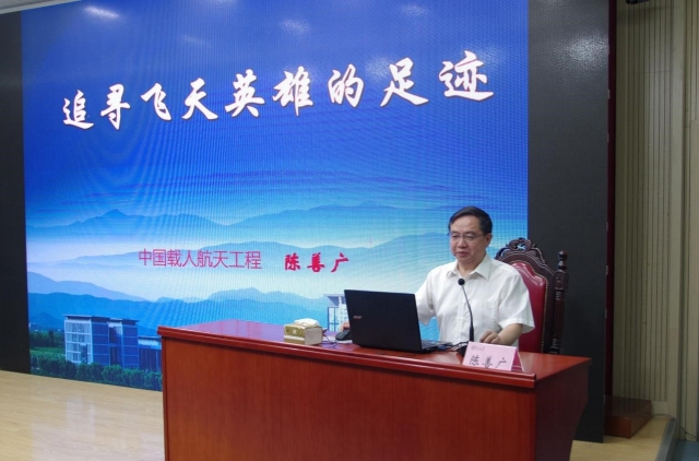 2019年9月26日,中国载人航天工程副总设计师、东南大学兼职教授、机械工程学院博士生导师陈善广教授应邀在东南大学九龙湖校区人文讲座报告厅做了题为“飞天英雄的足迹”的学术讲座。东南大学仪器科学与工程学院院长宋爱国教授、机械工程学院工业设计系系主任薛澄岐教授、机械工程学院团委书记史红叶以及学校近500名师生出席了这次“通识科学”系列名家高层演讲活动。