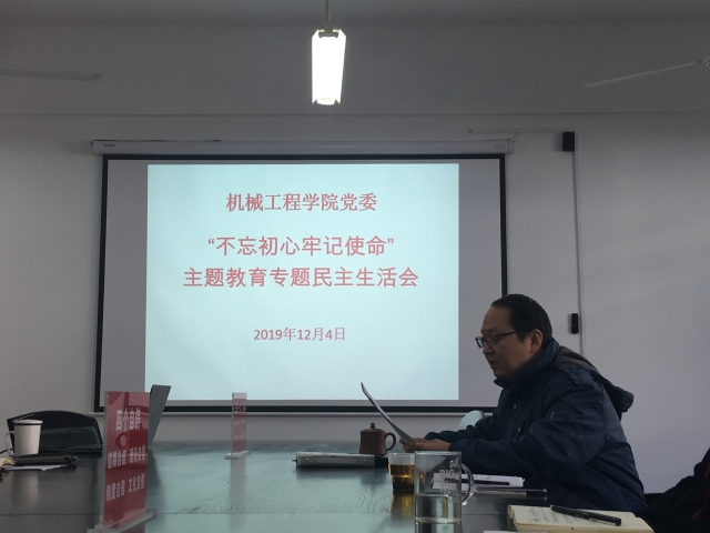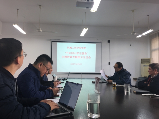 2019年12月4日星期三上午,机械学院党委在机械楼第一会议室召开“不忘初心、牢记使命”主题教育专题民主生活会,学院班子人员全部到场,黄大卫副校长参加本次会议。