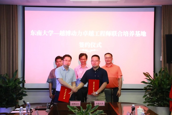 2020年6月18日,东南大学与开沃新能源汽车集团股份有限公司、南京越博动力系统股份有限公司就“卓越工程师联合培养基地”举行签约暨揭牌仪式。东南大学教务处副处长沈孝兵教授、机械工程学院副院长殷国栋教授、副院长毕可东教授、莫景文副教授、庄伟超博士等出席了签约仪式,开沃汽车集团常务副总裁董钊志、人力资源部乔达总监,越博动力董事长兼总经理李占江、副总经理兼新能源汽车研究院院长蒋元广等领导参加签约。