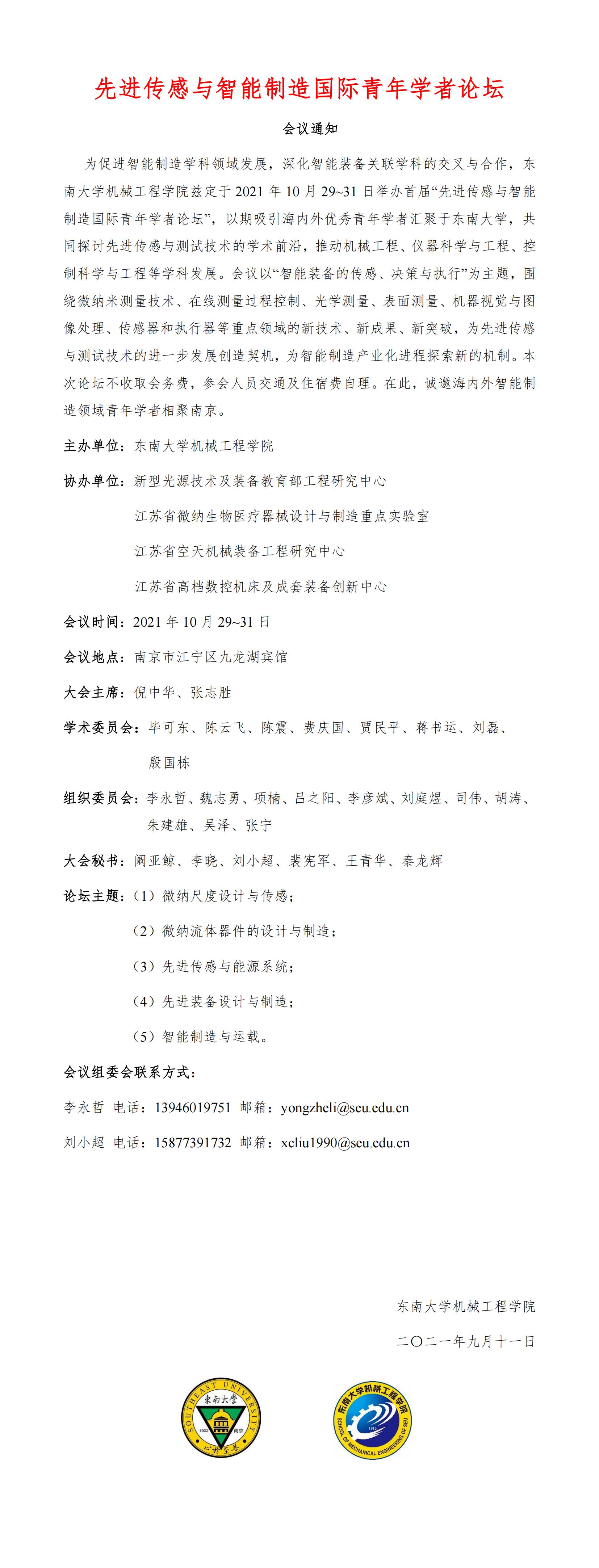 先进传感与智能制造国际青年学者论坛 会议通知