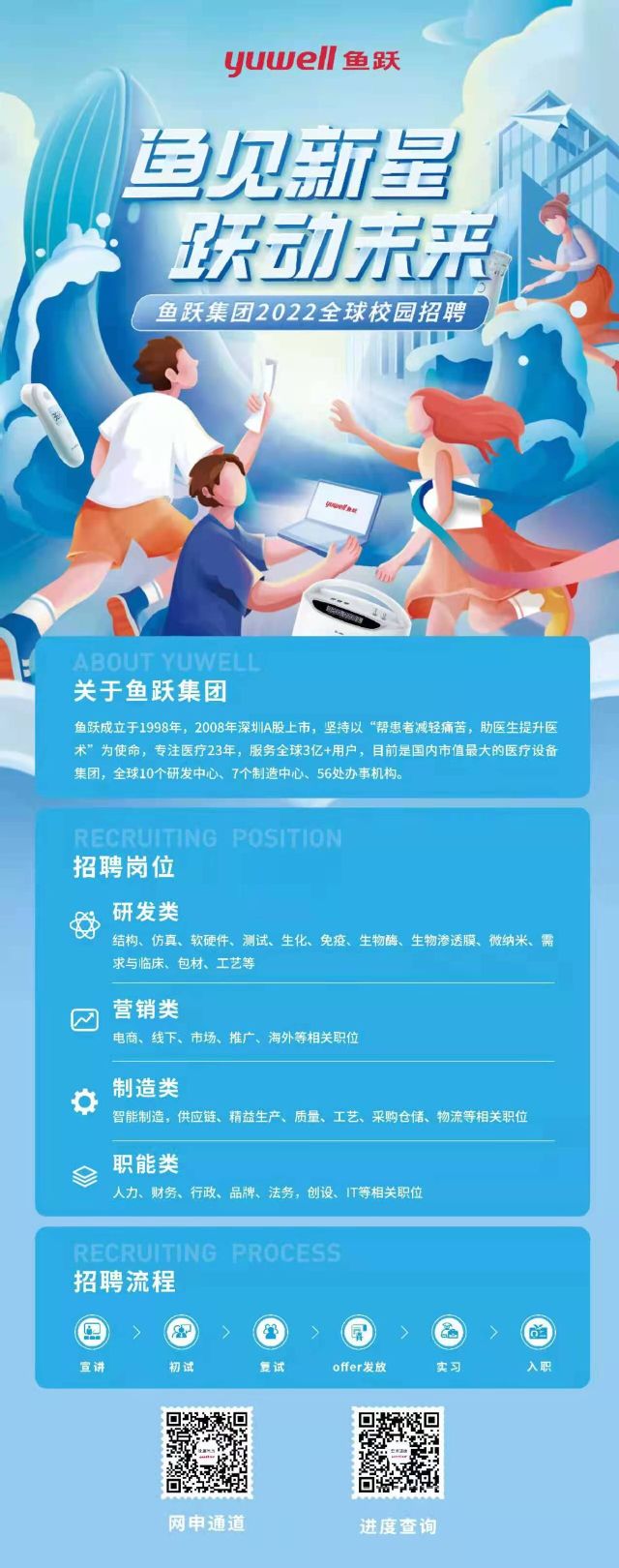 同学们好,鱼见新星,跃动未来—鱼跃集团2022校园宣讲会东南大学站即将开启! 非常高兴邀请大家参与我们这次的宣讲会: