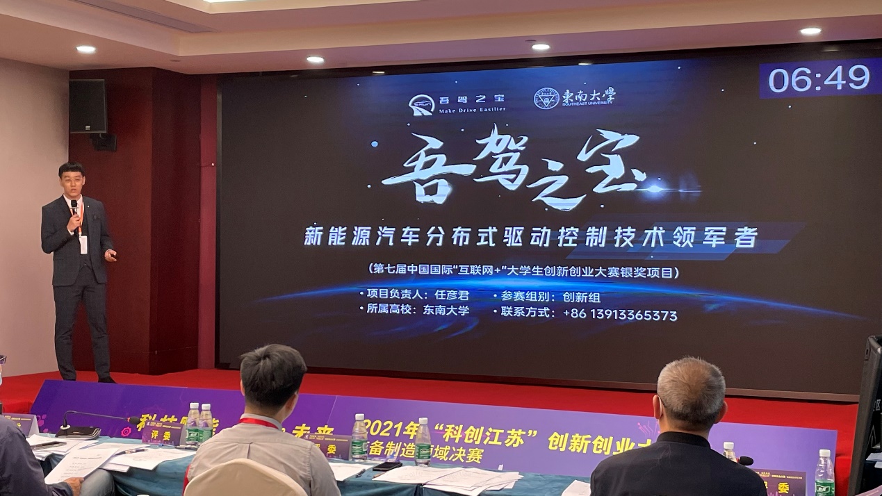 江苏省科协党组成员、副主席冯少东,团省委副书记张迎春,南京工程学院副校长朱晓春,省工信厅产业人才与合作处二级调研员秦飞出席了开幕式并共同启动大赛。在装备制造领域的决赛中,来自清华大学、同济大学、南京理工大学、东南大学、中国中车、国家电网、中电十四所等知名高校和大型国企的30个创新创业团队同台竞技。leyu乐鱼web登录入口博士研究生任彦君牵头完成的“吾驾之宝:新能源汽车分布式驱动控制技术领军者”项目,通过精彩项目路演和答辩,得到了专家评审组一致认可,成功斩获大赛一等奖。我院近年来持续推动创新创业和实践育人工作深入开展,不断完善创新人才培养有效模式、激励方式和长效机制,强化学生科学精神和创新实践能力培养,该奖项是我院在“双创”领域斩获的又一重量级荣誉。