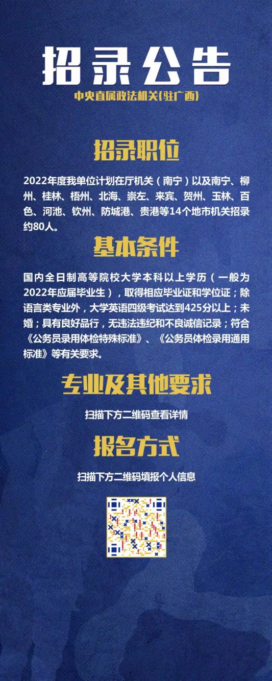 中央直属政法机关驻广西2022届应届毕业生招考通知