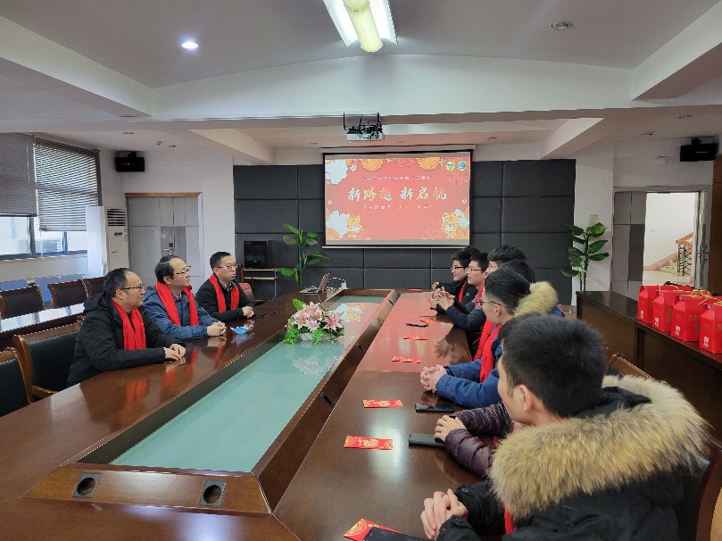 春节将至,岁寒情深,在2022年春节到来之际,机械工程学院师生除夕见面会顺利开展。2022年1月31日农历除夕日上午,机械工程学院党委书记张志胜老师、院长倪中华老师、党委副书记兼副院长王斌老师一行代表学院来到机械楼南高厅,与春节留校学生欢聚一堂,向同学表达了新年祝福,亲切询问了学生在校的生活、学习情况,并为同学们准备了丰富的春节大礼包。