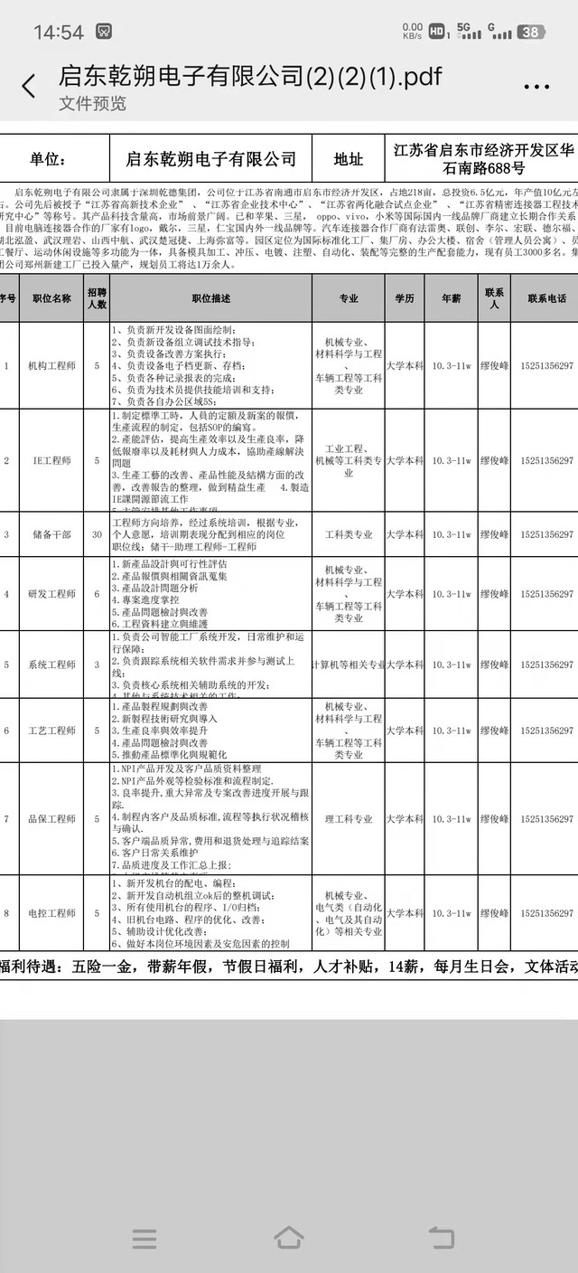 招聘|启东乾朔电子有限公司