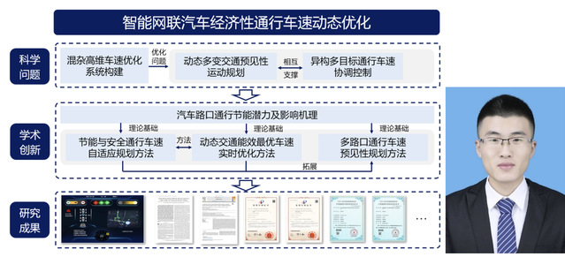 该论文聚焦智能网联汽车经济性通行车速动态调控问题,形成了节能与安全通行车速自适应规划方法、动态交通能效最优车速实时优化方法、多路口通行车速预见性规划方法三个创新点,为智能网联汽车节能控制研究提供了理论基础与方法支撑,为交通领域节能减排贡献力量。该博士学位论文得到了国家杰出青年科学基金、国家自然科学基金、江苏省重点研发计划等7项国家/省部级项目资助。