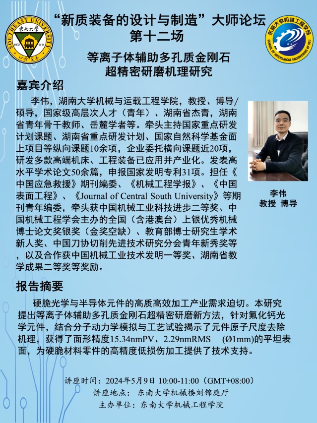 讲座地点: 东南大学机械楼刘锦庭厅