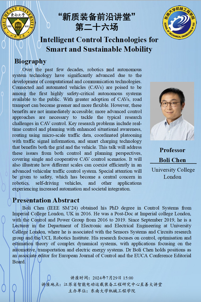 讲座地点:江苏省智能电动运载装备工程研究中心至善大讲堂