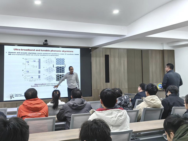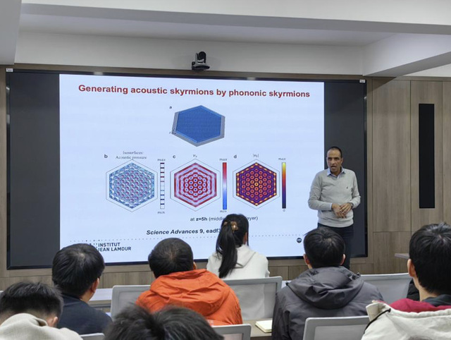 2024年12月10日,Badreddine Assouar教授应邀来我院南高厅作题为《Phononic Skyrmions: A New Horizon for Structuring Sound and Vibrations?》的学术报告。