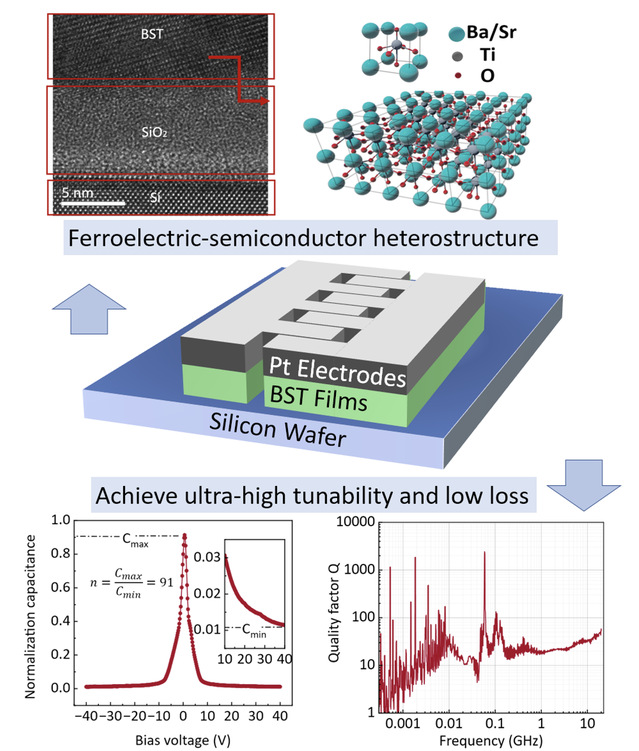 钛酸锶钡(BST)因其高介电常数、低损耗和优异的电压调控特性,被视为下一代射频微波器件的核心材料。然而,传统BST器件在可调性、基底适配性和柔性化方面存在显著瓶颈。近期,leyu乐鱼web登录入口张辉教授指导的博士生毛飞龙在《Applied Physics Letters》《Applied Physics Express》等期刊连续发表三项重要研究成果,通过材料设计、工艺优化和器件结构创新,系统性突破BST电容器性能极限和应用领域局限,为高频通信、可穿戴电子等前沿领域提供全新解决方案。