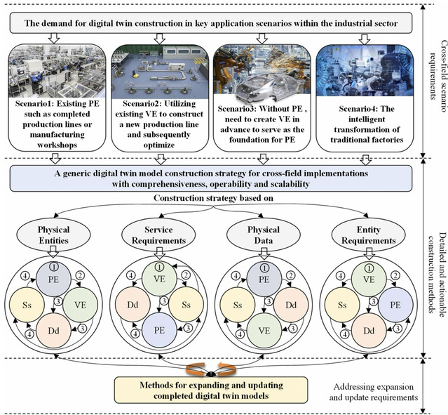 近日,leyu乐鱼web登录入口刘晓军教授团队在国际权威学术期刊《Journal of Manufacturing Systems》发表了题为“A generic digital twin model construction strategy for cross-field implementations with comprehensiveness, operability and scalability”(用于跨领域实施的通用数字孪生模型构建策略,具有全面性、可操作性和可扩展性)的研究论文。该研究针对不同的应用场景,以五维数字孪生概念模型的结构组成为基础,介绍了基于物理实体、孪生服务要求、物理数据和实体要求的构建流程。这一策略适应不同的业务环境,为开发复杂的数字孪生模型提供了可行的构建方法。