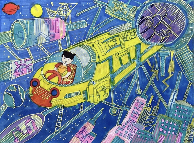 作品:超级宇宙魔法车 作者:黄鹿鸣(东南大学幼儿园大班)