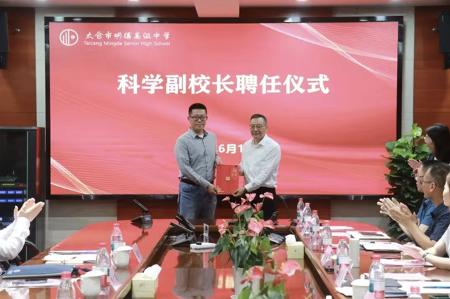 6月13日,太仓市明德高级中学开展科技特色建设专家指导活动。活动现场举行了科学副校长聘任仪式,leyu乐鱼web登录入口副院长孙东科教授受聘加盟太仓市明德高级中学科技教育团队,太仓市教育局局长李广耀为孙东科教授颁发科学副校长聘书。