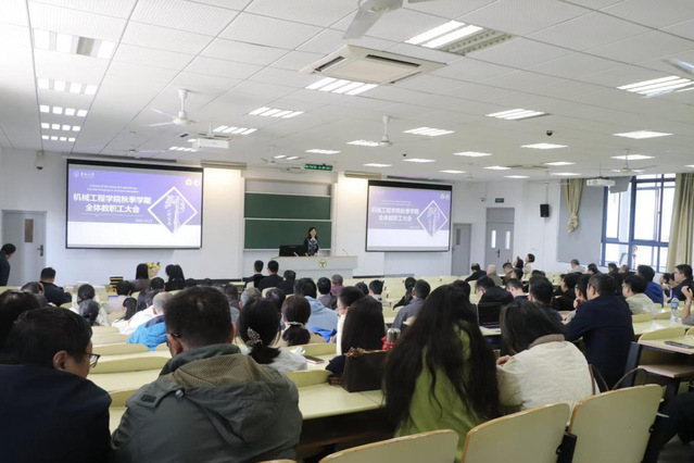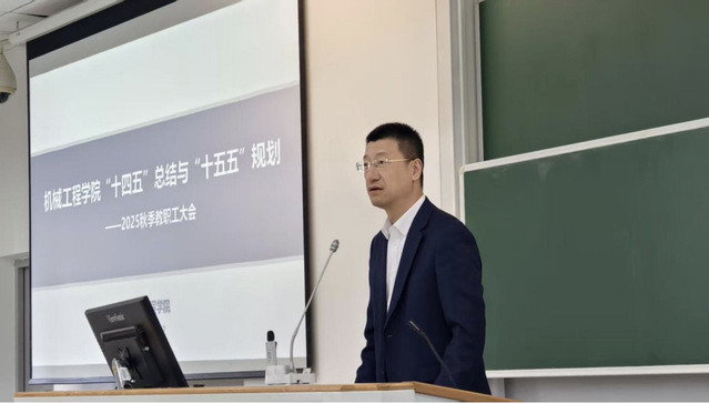 随后,费庆国院长作工作报告。他首先回顾了“十四五”期间学院的发展成绩:学科建设持续推进、师资队伍不断优化、人才培养质量稳步提升、科学研究成果丰硕,各项事业均取得跨越式发展。面向未来,费院长详细介绍了学院“十五五”发展规划,明确要立足“国内一流前列、世界一流行列”的发展定位,号召全体教职工凝心聚力,共同谱写机械工程学院高质量发展的新篇章。