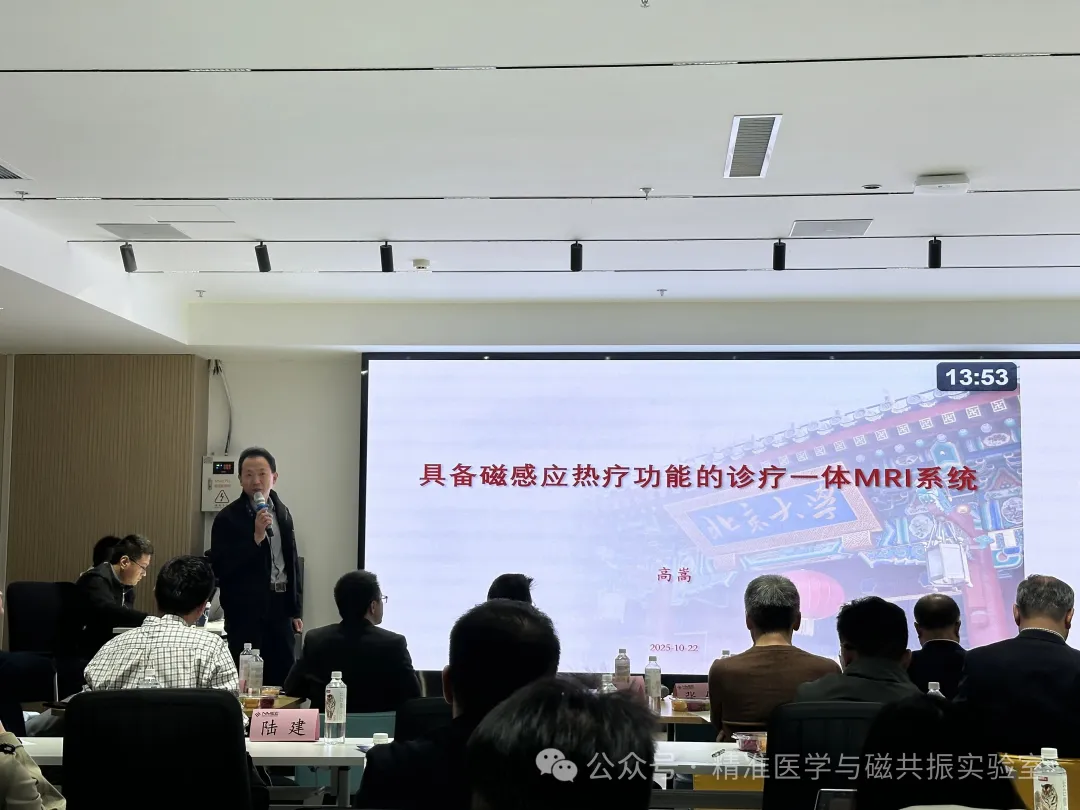 国家高层次青年人才、东南大学附属中大医院陆建副主任主持了“磁共振下的磁热疗内放疗”专题。在该专题中,东软医疗副总裁徐勤博士介绍了东软磁共振产品研发和创新技术发展历程,破核心部件卡脖子之局、破无可用系统平台之局,与AI智能结合的快速分子成像技术与临床应用等。北京大学高嵩教授介绍了发展具备磁感应热疗功能的诊疗一体化MRI系统的技术挑战,MRI梯度线圈如何为磁感应热疗提供高频交变磁场、高频交变磁场对超导磁体的影响与MRI系统的解决方案等。上海联影医疗科技有限公司代表、联合创新部总监袁健闵博士介绍了联影磁共振的技术进展,5T超高场MRI超高清成像助力重大疾病精准诊断,超高时空分辨率live成像技术捕捉动态影像,全球首台碳化硅磁共振实现绿色节能助力新能源革命。鑫高益梁平博士介绍了无液氦磁共振创新机型与诊疗一体化应用,超导可旋转全身多体位成像MRI系统以及其在对脊柱侧弯诊断上的应用,超大口径无液氦术中可移动磁共振等。东南大学附属中大医院陆建主任介绍了介入内放疗放射性粒子植入技术的发展与应用,自主研发的复合粒子磁热疗样机,以及提出如何利用现有磁共振进一步实现磁热疗走向临床,促进了与会专家的深入讨论。