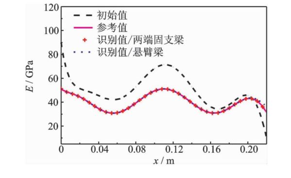 针对纤维编织复合材料宏观力学参数空间分布的非均匀特性,提出基于正交展开的复合材料等效参数分布场识别方法,利用有限测点加速度响应信息识别复合材料梁上连续分布的等效弹性参数。基于Legendre正交多项式的参数分布场模型,推导了加速度频响函数对正交多项式系数的灵敏度,通过迭代求解优化问题识别复合材料梁沿轴向连续分布弹性参数场。以两端固支Euler-Bernoulli梁为研究对象开展数值仿真研究,验证识别方法的正确性;进一步开展复合材料梁模态试验,利用实测频响函数识别非均匀复合材料梁的杨氏模量场。结果显示,利用识别得到的等效杨氏模量场重构的结构频响函数与试验值高度吻合,表明识别得到的等效杨氏模量场能有效表征梁的刚度分布,且该识别方法对测量噪声具有鲁棒性。