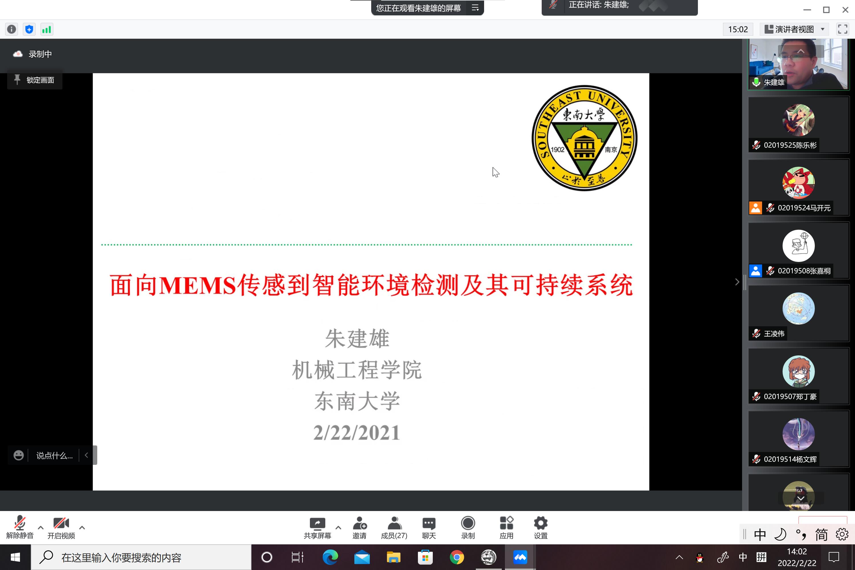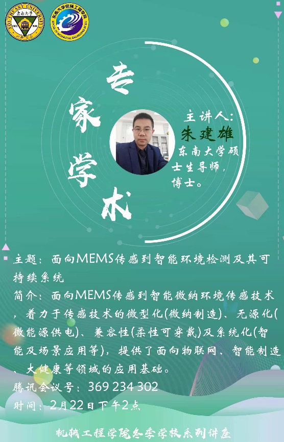 2月22日,leyu乐鱼web登录入口硕士生导师朱建雄老师为机械工程学院全体同学带来了一场别开生面的讲座,围绕面向MEMS传感到智能环境检测及其可持续系统这一主题,朱建雄老师从MEMS的发展历史与趋势出发,分析了其商业化面临的挑战,并着力于MEMS传感技术微型化、无源化、兼容性以及系统化这四个方面为我们详细介绍了MEMS传感的原理与应用。朱建雄老师列举从智慧城市到智能家居再到数字阮生、人体健康检测等领域的大量例子为同学们深动形象的展示了面向MEMS传感到智能环境检测及其可持续系统在面向物联网、智能制造以及大健康等领域的广泛应用。同时朱建雄老师也讲座过程中对于各种检测的机理深入浅出的为同学们做了介绍。最后朱建雄老师给同学们展示了自己在面向MEMS传感到智能环境检测及其可持续系统方面的一些研究成果,并与同学们做出了一些交流探讨,通过这场讲座,同学们对MEMS有了一定的了解,也明白了该项技术良好的前景。