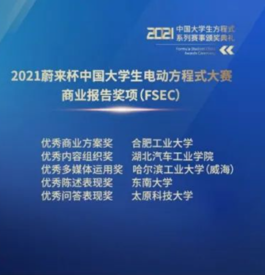 纯电动方程式总成绩三等奖