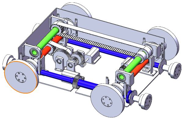 对于所要设计的可四向移动轨道搬运机器人,在满足课题需求的前提下,对其进行课题研讨,细化需求;拟定可行性方案,出具草图;进行初步计算,确定主要参数和选型;小组分工,进行三维建模;小组分工,针对课题进行出图。
